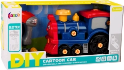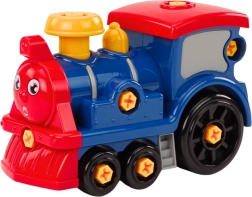 Jucărie distractivă și educativă pentru micii constructori: locomotivă asamblabilă în culoare albastru închis, cu unelte, care susține motricitatea fină, concentrarea și creativitatea. Include o bormașină pentru copii, șurubelniță și capete interschimbabile pentru demontare și asamblare ușoară. Jucăria are certificare CE, respectă standardul EN71 și este potrivită pentru copii de la 3 ani. Bormașina este alimentată cu 3× 1,5 V AAA (bateriile nu sunt incluse).