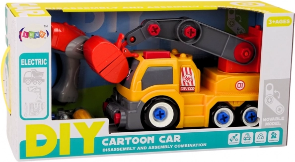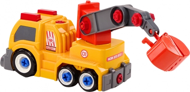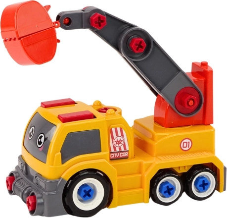 Acest camion colorat cu macara, în culoare portocalie, va încânta orice copil pasionat de utilaje de construcții. Datorită opțiunii de DIY – dezasamblare și reasamblare, copiii descoperă cum funcționează vehiculul, dezvoltând răbdarea și gândirea logică. Părțile mobile, precum brațul macaralei și cleștii/lingura, aduc numeroase scenarii de joacă realistă.
