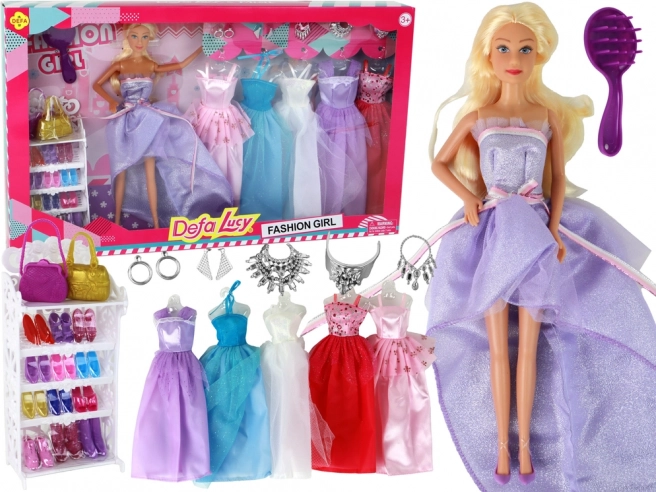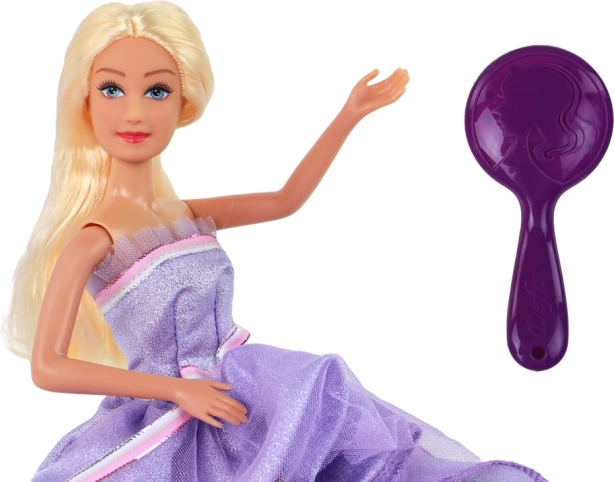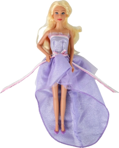 Păpușa, în rochie mov strălucitoare, cu ochi albaștri și păr lung, ușor de pieptănat, arată ca o adevărată prințesă. Datorită celor cinci rochii diferite, cu detalii din tul și sclipici, copiii se pot bucura de stilizare, schimbarea ținutelor și inventarea de povești noi în fiecare zi.