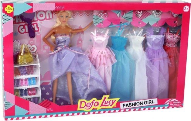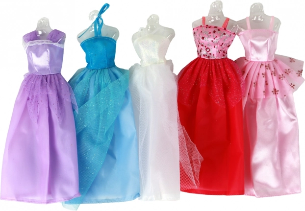 Setul include 5 rochii stilate (alb, mov, roz închis, albastru și roz deschis) cu detalii din tul și sclipici. Se îmbracă ușor și încurajează creativitatea în schimbarea ținutelor.