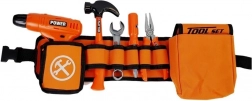 Centura cu mai multe compartimente păstrează uneltele mereu la îndemână, iar închiderea confortabilă cu cataramă asigură stabilitate în timpul jocului. Bormașina este adaptată mâinilor mici, iar datorită diferitelor burghie, șuruburi și piese „din lemn”, copiii înțeleg cu ușurință principiile înșurubării și construcției.