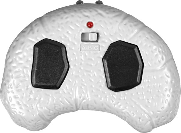 Telecomandă cu două butoane: mers înainte/oprit și manevră de rotație. Manipulare ușoară pentru copii de la 6 ani.