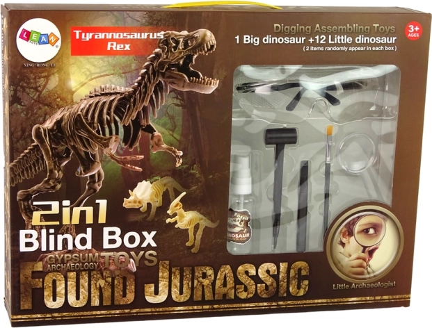 Uneltele incluse în set permit descoperirea scheletului unui dinozaur mare și a încă două mai mici. Două blocuri și de două ori mai multă distracție. Cele două schelete mici sunt învăluite în mister. După curățarea oaselor, accesoriile incluse în set vă vor ajuta să aflați ce dinozaur se ascundea în piatră.