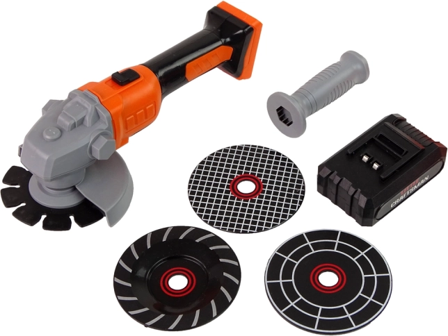 Acest set de unelte pentru copii aduce o experiență realistă de lucru în atelier – sigur și distractiv. Polizorul ușor din plastic, cu disc rotativ activat prin glisarea comutatorului de pe mâner, îi va încânta pe micii constructori. Sunt incluse 3 discuri interschimbabile, ochelari de protecție, mască și mănuși, care îi învață bazele siguranței.