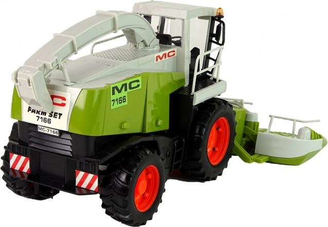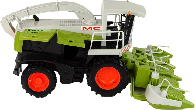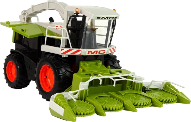 Combine mare verde oferă un aspect realist, cu părți mobile precum volanul și hederul, care simulează munca reală pe câmp. Elementele rabatabile permit simularea reparațiilor și a service-ului vehiculului, în timp ce interiorul încăpător permite depozitarea mărunțișurilor sau a jucăriilor.
