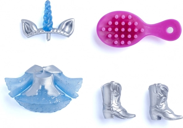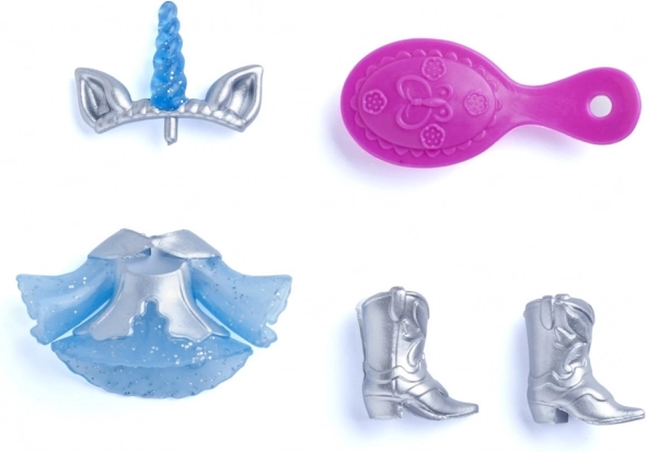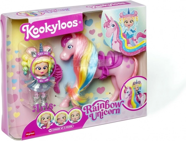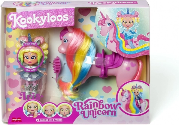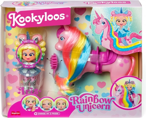 Crezi în unicorni? În lumea KookyLoos, totul este posibil. Descoper-o pe Aurora și unicornul ei curcubeu pe nume Star, a cărui coamă este făcută din păr adevărat! Piaptăn-o cu peria și încearcă stiluri diferite. Pregătește-te pentru mii de aventuri cu KookyLoos. Nu uita că fiecare KookyLoos are propriile accesorii, pe care le poți combina și schimba cu cele ale altor KookyLoos, și le poți schimba expresiile feței cu un singur click. Setul conține: 1 păpușă, 1 unicorn, 1 perie, 1 ținută.