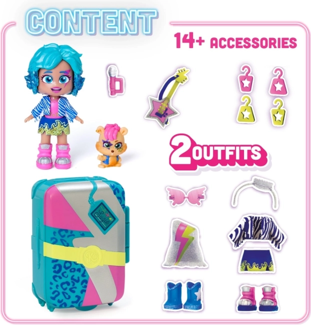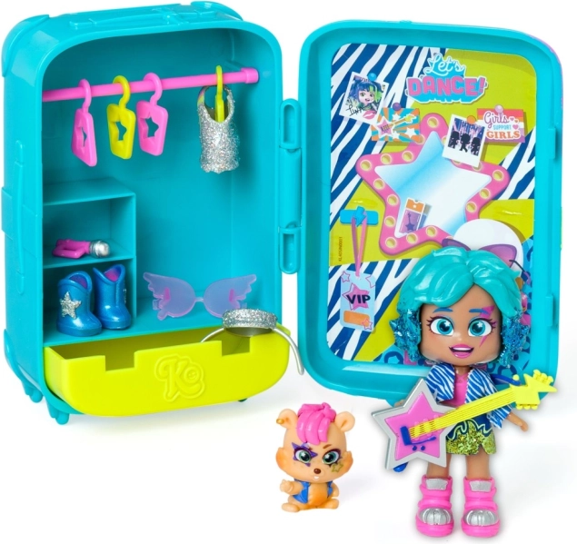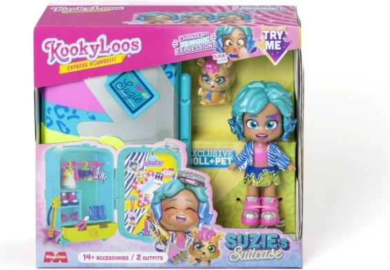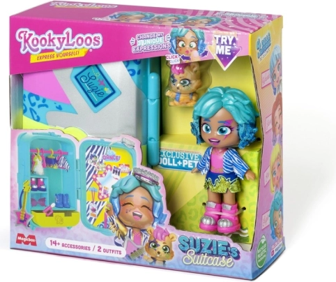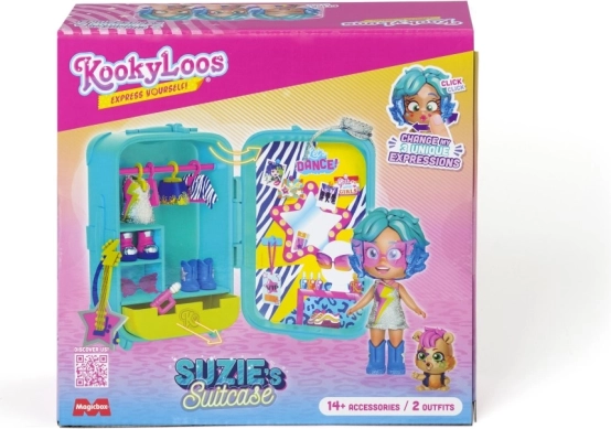 Sunteți gata de plecare? Valiza KookyLoos conține tot ce aveți nevoie pentru a vă distra de minune. Vă așteaptă până la 4 modele de colecționat! Suzi este o adevărată cunoscătoare de modă. Ținuta ei haute couture urmează cel mai nou stil parizian! Sunteți pregătiți pentru un tur al bijuteriilor din Place Vendôme și Rue Cambon? Dar voi decideți care dintre cele două ținute o va purta la cel mai nou fashion show! Are și trei expresii faciale diferite, pe care le puteți schimba cu un singur click. Puteți pune totul în valiză și să le luați cu voi! Valiza conține – păpușă KookyLoos exclusivă, 2× ținută, 1× animăluț, peste 13 accesorii și umerașe.