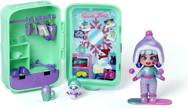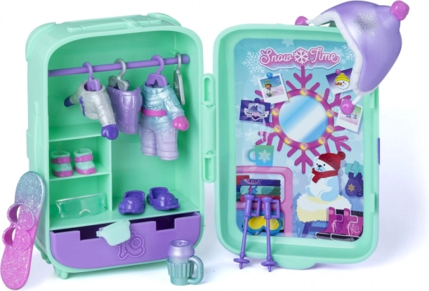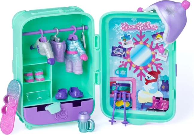 Valiza servește drept mini dulap și spațiu de depozitare, astfel încât ai toate ținutelor, animăluțul și accesoriile la un loc. Două combinații de iarnă, placa și accesoriile tematice stimulează imaginația și motricitatea fină.