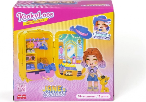 Cu valiza KookyLoos intrați într-o lume magică a fanteziei! Această jucărie uimitoare include păpușa Jane, care este pregătită pentru toate aventurile voastre. Are păr roșu și un zâmbet larg și vine cu 14+ accesorii de modă! Jane este ideală pentru safari sau orice altă aventură.