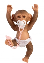 Această maimuțică reborn realistă îi va încânta pe copii și colecționari prin execuția atentă. Corpul integral din vinil, cu textură fină și cute frumos lucrate, oferă un aspect natural și permite scăldatul în siguranță (recomandăm să evitați udarea genelor). Datorită articulațiilor la mâini și picioare, maimuțica este excelent articulată – poate sta jos și poate fi agățată de brațe sau picioare.