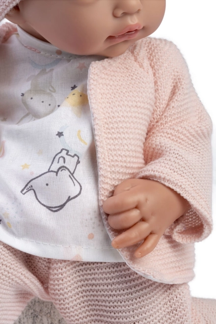 Această păpușă realistă bebeluș este cadoul ideal pentru copiii de la trei ani în sus. Cu corp textil moale și membre prinse în articulații, oferă o gamă largă de mișcări, fiind perfectă pentru dezvoltarea imaginației și jocul de rol. Fabricată manual în Spania, garantează o calitate înaltă a prelucrării.
