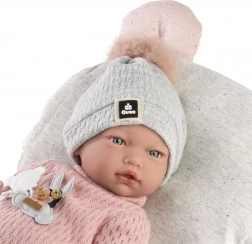 Această păpușă realistă bebeluș va încânta orice copil prin autenticitate și finisaj plăcut. La o ușoară apăsare pe piept, emite un râs bucuros, care stimulează imaginația și dezvoltă abilitățile sociale în timpul jocului. Corpul textil moale este plăcut la atingere, iar brațele și picioarele prinse pe articulații permit poziționare ușoară și statul în șezut.