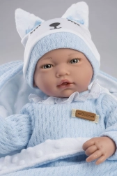 Această păpușă realistă cu sunete are un corp moale din material textil pentru îmbrățișări plăcute și momente jucăușe. Este echipată cu articulații la mâini și picioare care permit poziționarea și șederea, ceea ce sprijină o joacă mai diversificată. Păpușa vine cu o suzetă ca accesoriu și este realizată manual în Spania, ceea ce adaugă un sentiment de exclusivitate.