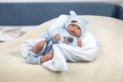 Drăgălașa păpușă bebeluș Hugo este ideală pentru copiii care doresc să se joace și să îngrijească propriul 'bebel'. Păpușa, la apăsarea pe piept, emite un sunet autentic de râs al copilului. Este echipată cu articulații care permit mișcarea brațelor și picioarelor, și datorită poziționării, poate și să stea așezată.