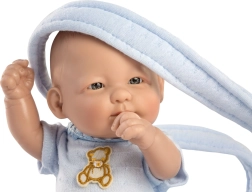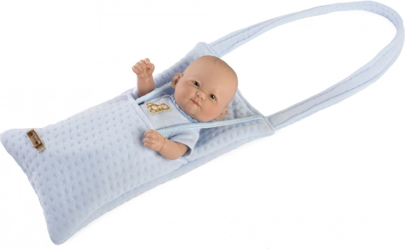 Această păpușă realistă bebeluș măsoară 25 cm și este fabricată cu atenție la fiecare detaliu, inclusiv adorați gropițe și sex. Mâinile și picioarele sunt atașate cu articulații, permițând păpușii să adopte diferite poziții și chiar să stea. Datorită corpului din vinil complet, este potrivită și pentru scăldat.