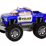 Vehiculul este echipat cu roți off-road mari, negre, care asigură aderență excelentă pe diverse suprafețe și permit joaca în condiții mai dificile. Caroseria este vopsită în albastru și, pentru un plus de autenticitate, este decorată cu inscripția "POLICE". Pe acoperiș sunt amplasate girofaruri de poliție, care îi accentuează funcția și aspectul.