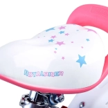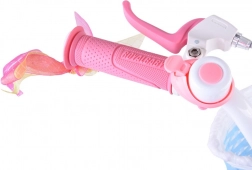 Apărătoarea completă a lanțului protejează hainele și degețelele, în timp ce frânele tambur față și spate oferă o încetinire fiabilă. Coșul util, soneria și panglicile de pe ghidon adaugă un stil jucăuș. Este inclusă și bara de ghidare pentru părinți, care ușurează primele ieșiri.