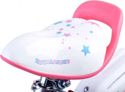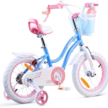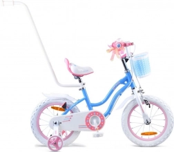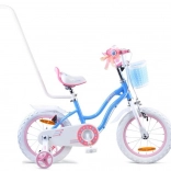 Bicicleta stilată pentru copii RoyalBaby Star Girl cu roți de 14″ este ideală pentru primele plimbări. Oferă stabilitate datorită roților ajutătoare, frâne de mână sigure, apărătoare completă pentru lanț și șea confortabilă cu mâner. Include coș frontal, sonerie și panglici colorate pe ghidon – totul pentru o învățare a mersului plină de bucurie și siguranță.