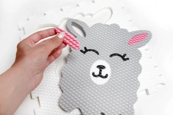 Acest covor puzzle din spumă, în culoare albă, cu un motiv prietenos de lamă, va îndulci orice colțișor pentru copii. Piesele se îmbină ușor, astfel încât, în câteva clipe, creați o suprafață de joacă sigură și moale, care protejează de frig și de micile căzături.