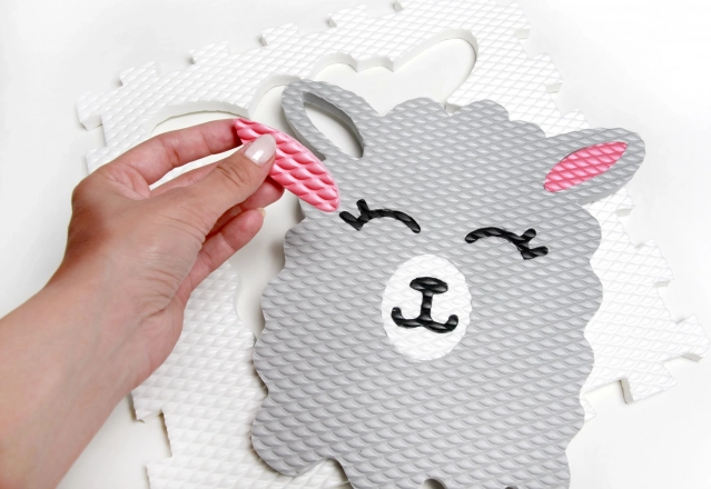 Un covor puzzle din spumă, drăguț, cu motiv de lamă, oferă copiilor un loc sigur și confortabil pentru joacă. Datorită materialului moale, asamblării ușoare și suprafeței rezistente, este ideal pentru camera copiilor și camera de joacă. Amortizare moale a șocurilor, întreținere ușoară și design distractiv pentru joacă relaxată și creativă.