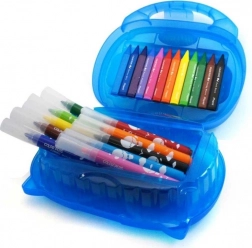Carioci și creioane cerate organizate clar într-o carcasă solidă – ideale pentru acasă, la grădiniță și în călătorii.