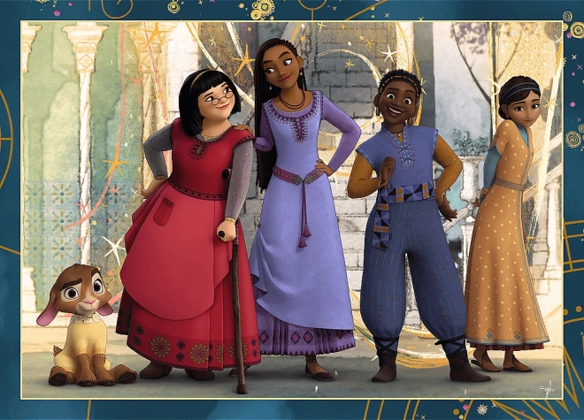 Descoperă magia poveștii DISNEY Wish cu setul puzzle 4în1 pentru copii. Patru puzzle-uri separate, cu număr diferit de piese, aduc distracție pentru copii mai mici și mai mari. După asamblare, rezultă imagini cu dimensiunea de 285 × 205 mm. Fabricat în Polonia din materiale ecologice, potrivit pentru copii de la 4 ani.