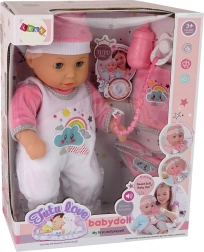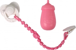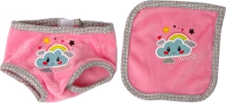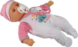 Intră în lumea fanteziei și îngrijirii cu această păpușă drăgălașă, îmbrăcată într-o pijama roz-alb împodobită cu un nor zâmbitor. Pe cap are o căciuliță asortată, iar setul include și o suzetă, o sticlă, un bavețică și un scutec, permite un joc mai realist.