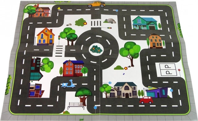 Harta și semnele de circulație oferă copiilor un spațiu pentru joaca creativă și învățarea regulilor de circulație.
