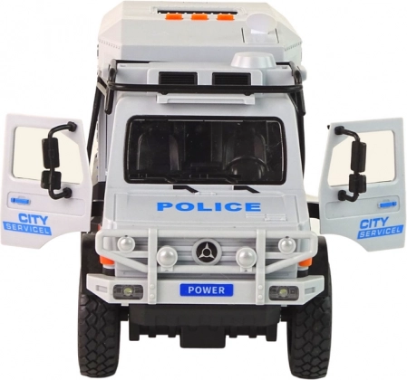 Vehiculul de teren mobil pentru servicii urbane este realizat la o scară de 1:14, ceea ce îl face un model extrem de detaliat. Este echipat cu tracțiune pull-back – pur și simplu trageți-l înapoi și eliberați-l pentru a porni înainte cu viteză maximă.