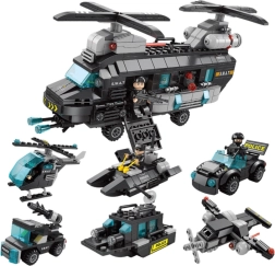 Setul permite crearea a până la 19 combinații diferite de vehicule ale unităților speciale. Copiii se pot bucura astfel de creativitate nelimitată și ore întregi de distracție. Putem construi Elicopter de servicii speciale, Multifuncțional – ideal pentru misiuni de salvare și operațiuni speciale. Avion de luptă rapid și manevrabil, echipat cu cea mai nouă tehnologie de luptă.