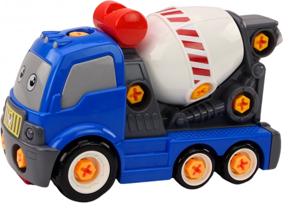 Această betonieră pentru copii aduce o asamblare și demontare distractivă a întregii jucării. Copiii își exersează motricitatea fină, gândirea logică și răbdarea atunci când, cu ajutorul bormașinii electrice și al șurubelniței incluse, montează diferitele piese. Culorile vii și designul prietenos, de tip desen animat, încurajează jocul creativ de șantier.