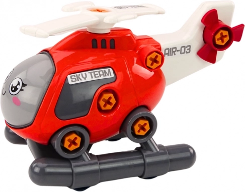 Descoperiți bucuria construirii cu elicopterul roșu de montat cu șuruburi, pe care copiii îl pot demonta și reasambla cu ușurință. Rotorul principal rotativ și roțile mobile adaugă realism jocului și stimulează imaginația la decolare, aterizare și în misiuni de salvare. Jucăria este concepută pentru mâini mici și ajută la dezvoltarea coordonării ochi–mână, a răbdării și a preciziei.