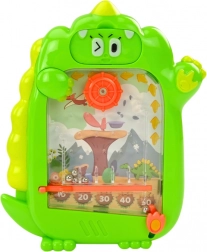 Jucărie de buzunar cu două fețe, în formă de dinozaur, care combină o tăbliță magică de desen și un pinball într-un singur produs. Datorită sliderului pentru ștergere rapidă și stylusului inclus, copiii creează fără hârtie, în timp ce pinballul dezvoltă coordonarea mână–ochi. Dimensiunile compacte sunt ideale pentru călătorii. Potrivită de la 3 ani, certificare CE, standard EN71.