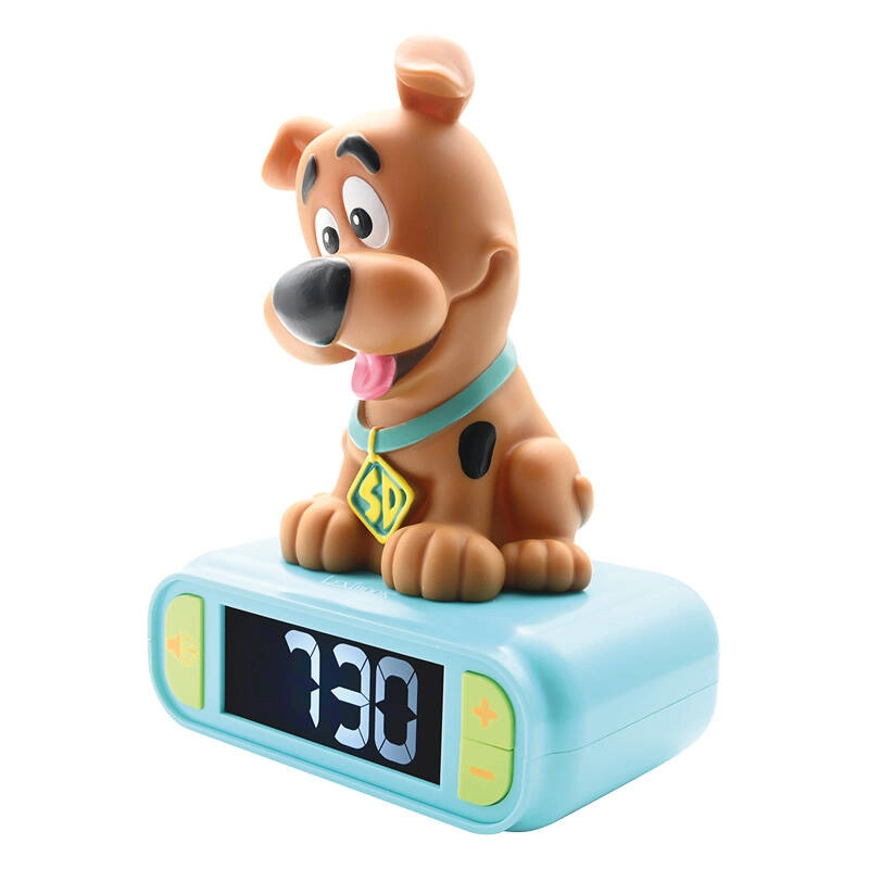 Ceas deşteptător pentru copii cu motivul SCOOBY-DOO care combină lumină de noapte 3D distractivă, ecran LCD iluminat uşor de citit şi 6 tonuri tematice de alarmă. Datorită operării simple, opţiunii 12/24 h, volumului reglabil şi funcţiei de amânare, este ideal pentru camera copilului şi îi ajută pe cei mici la învăţarea noţiunii de timp.