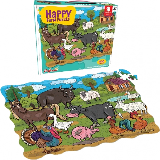 Puzzle ferma fericită oferă copiilor distracție creativă și inteligentă atunci când asamblează cele 208 piese cu tema fermei și a locuitorilor ei.