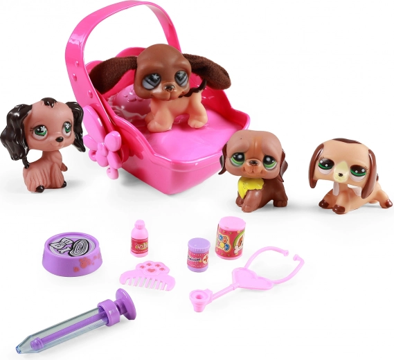 În plus, setul include echipamente necesare pentru a juca rolul de veterinar – pieptene, bol pentru mâncare, injecție și alte unelte. Toate accesoriile sunt proiectate având în vedere siguranța și distracția.
