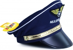 Șapcă de pilot stilată pentru adulți, decorată cu ecuson brodat, inscripția proeminentă „Cel mai bun pilot” și bandă aurie pe cozoroc – accesoriul perfect pentru petreceri, carnavaluri și cosplay.