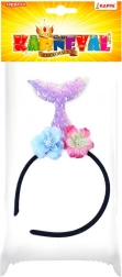 Bentiță veselă în stilul sirenei în eleganta culoare violet cu flori și coadă de pește – accesoriul ideal pentru carnaval, petreceri și ședințe foto tematice.