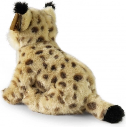 - Design realist: blană pătată, smocuri negre pe urechi și expresie adorabilă.