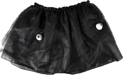 Costumul include o fustă neagră tutu decorată cu motiv de pânză de păianjen, care oferă un aspect autentic și este perfectă pentru petreceri tematice.