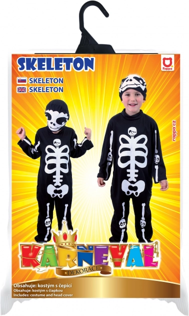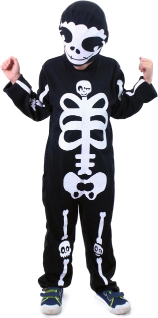 Acest costum stilat de schelet va transforma copilul tău, în câteva clipe, în vedeta oricărui carnaval, Halloween sau petrecere tematică. Datorită salopetei negre confortabile, cu imprimeu alb pronunțat de oase, și măștii, creează un aspect autentic și totodată distractiv de speriat.