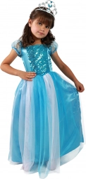 Transformați orice petrecere într-o poveste magică cu costumul de prințesă albastră. Combinația de albastru intens și tul alb delicat creează un aspect elegant, iubit de copii. Paietele sclipitoare de pe corsaj oferă rochiei o notă festivă și arată minunat în fotografii.