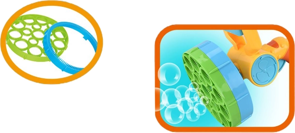 Două accesorii permit crearea de bule de dimensiuni variate, astfel încât să nu se plictisească niciodată.