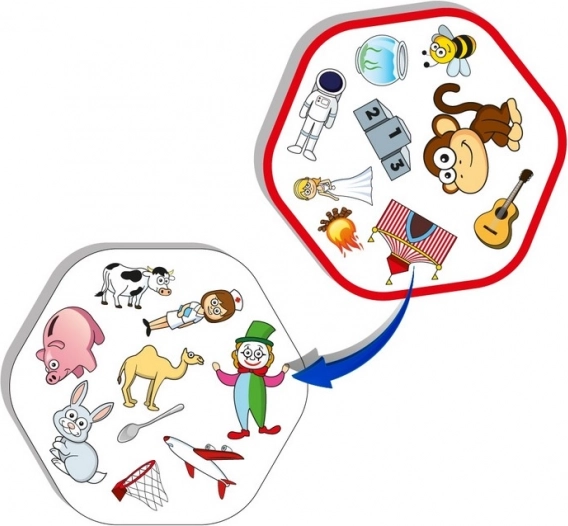 Jucătorii se întrec pe rând pentru a găsi și exprima rapid o potrivire între două cărți de joc. Jocul conține 72 de cărți și 64 de simboluri, asigurând posibilități infinite și distracție fără sfârșit.