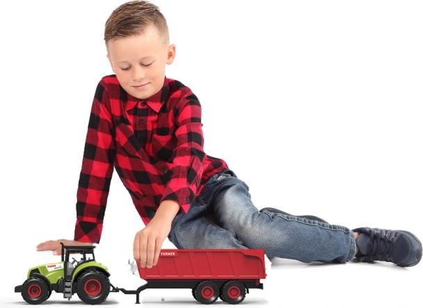 Tractor modern cu remorcă roșie din colecția Ferma mea mică, care va încânta orice mic fermier. Oferă efecte luminoase și sonore, mecanism inerțial pentru rulare lină și remorcă detașabilă pentru și mai multe posibilități de joacă. Bateriile sunt incluse în pachet.