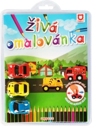 - 3 mini mașinuțe cu mecanism de întoarcere, planșe de colorat cu teme de curse