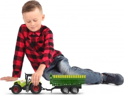 Acest tractor realist cu remorcă este ideal pentru jocurile copiilor despre viața la fermă. Datorită mecanismului cu inerție pornește ușor, iar butoanele activează sunete reale și efecte luminoase care sporesc autenticitatea. Remorca poate fi ușor detașată pentru a folosi tractorul separat.