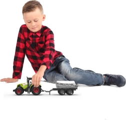 Descoperă distracția la fermă cu tractorul realist din plastic din colecția Ferma mea mică. Remorca poate fi detașată cu ușurință, astfel încât copiii pot folosi tractorul pentru diverse activități pe câmp și în curte. Datorită mecanismului cu volant, tractorul pornește lin și încântă cu sunete autentice și efecte luminoase.