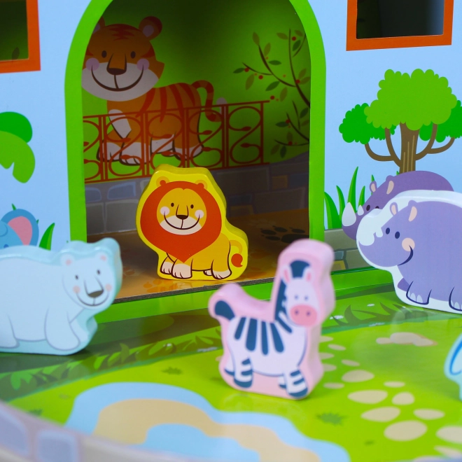 Acest set practic aduce copiilor lumea grădinii zoologice chiar în mâinile lor. Figurinele din lemn, atent realizate, susțin dezvoltarea imaginației, motricitatea fină și cunoașterea animalelor. Datorită valizei, copiii își pot transporta ușor jucăriile și le pot păstra toate într-un singur loc.