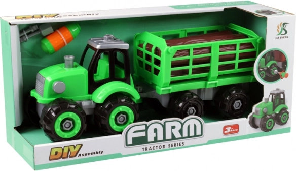 Descoperă tractorul verde de asamblat cu șuruburi, cu remorcă pentru lemne, care îmbină distracția cu învățarea. Datorită sistemului simplu de înșurubare, copiii pot demonta și reasambla vehiculul singuri, învață să lucreze cu unelte și își exersează răbdarea și coordonarea.